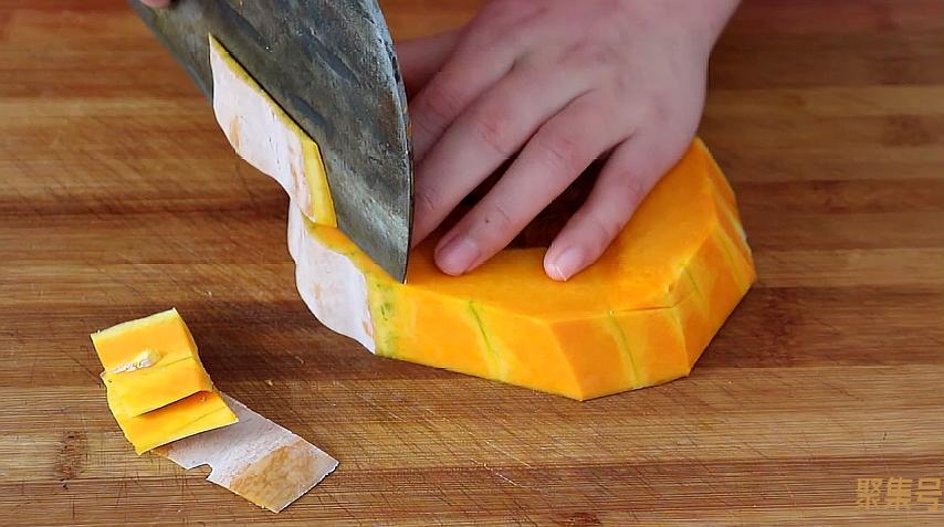 1、南瓜片切得薄一点,可以节省蒸的时间。