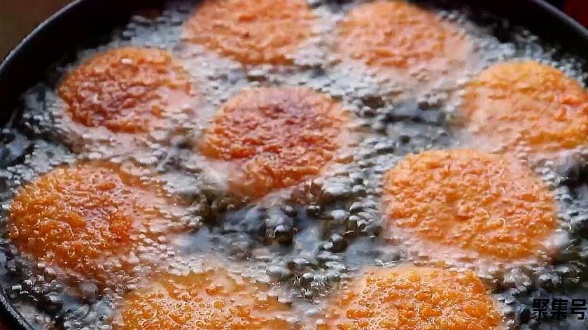 2、炸南瓜豆沙小饼的时候用中小火慢炸。