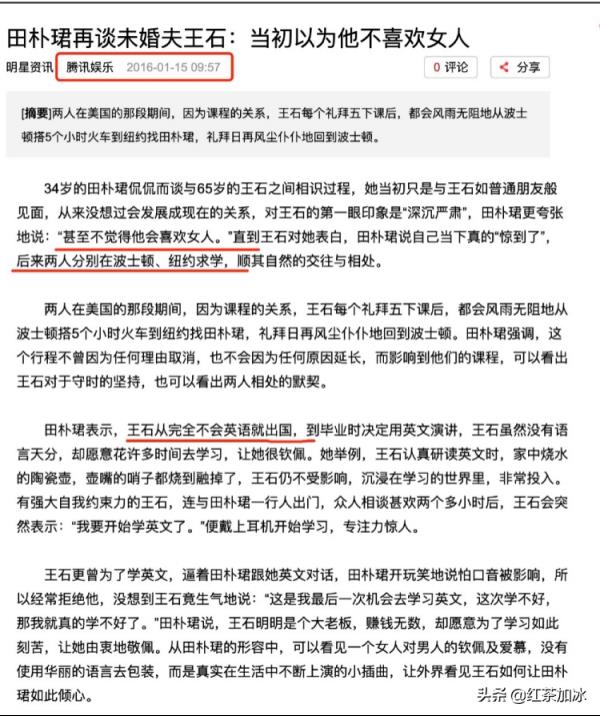 记得与王石各种细节印象的田小姐,在媒体反复询问她和王石第一面究竟在何时何地,她却浑水摸鱼,抛下一句“我们认识很久了”,便不愿再多言。