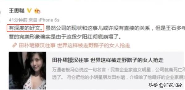 王思聪点赞文章《田朴珺撩汉往事 世界这样被走野路子的女人抢走》