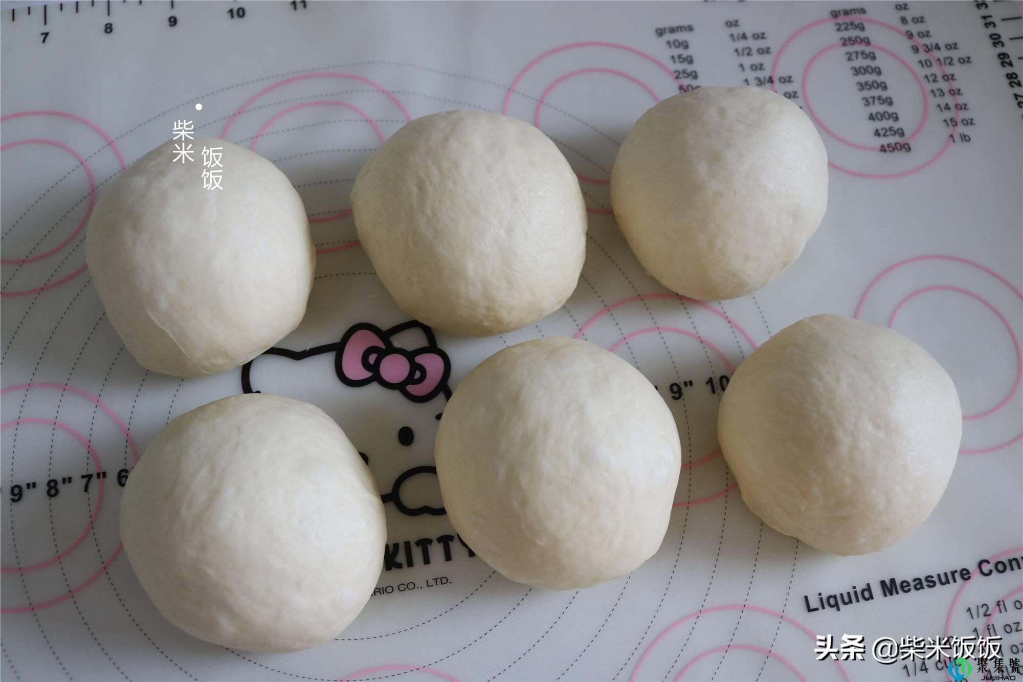 6,将面团取出来,平均分成6等份。再把面团分别滚圆,加盖保鲜膜松弛10分钟。