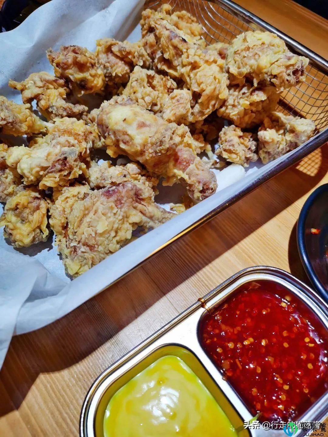 炸鸡上来之后,鸡很瘦,都是裹的面粉,面糊就得占一半。走的时候又被要了2元的餐具费,我就用了双一次性筷子,还有没有包装的铁盘,也不知道是哪里来的餐具费