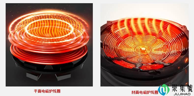 平面电磁炉采用的是平面的线圈盘,烹饪时火力更加均匀,不易糊底;凹面电磁炉采用的是凹面的线圈盘,爆炒时火力更加集中。