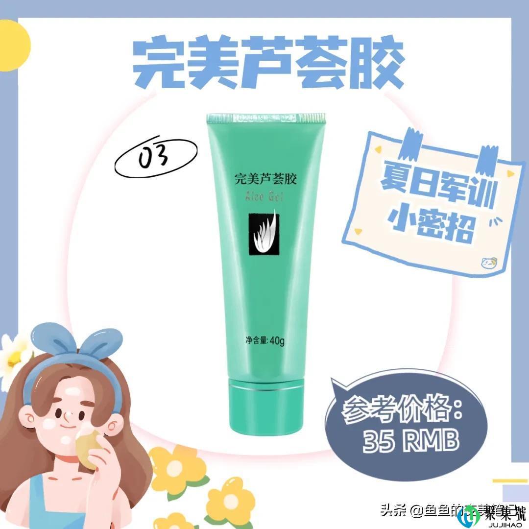晒后最黄金的修复时间是晒后72小时内,不想军训后变成非洲酋长,晒后第一时间给皮肤降温,使用凉水洗脸,(水温不要太冰,不然皮肤会受到冷热两级刺激)