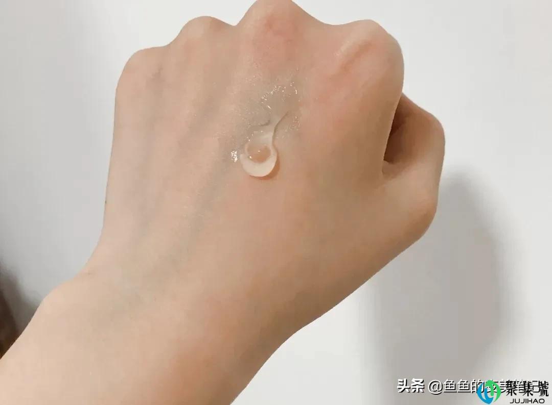 它是轻盈的白色乳液的质地,不粘腻不厚重,水水润润得非常轻薄,流动性也很强,上脸无负担。