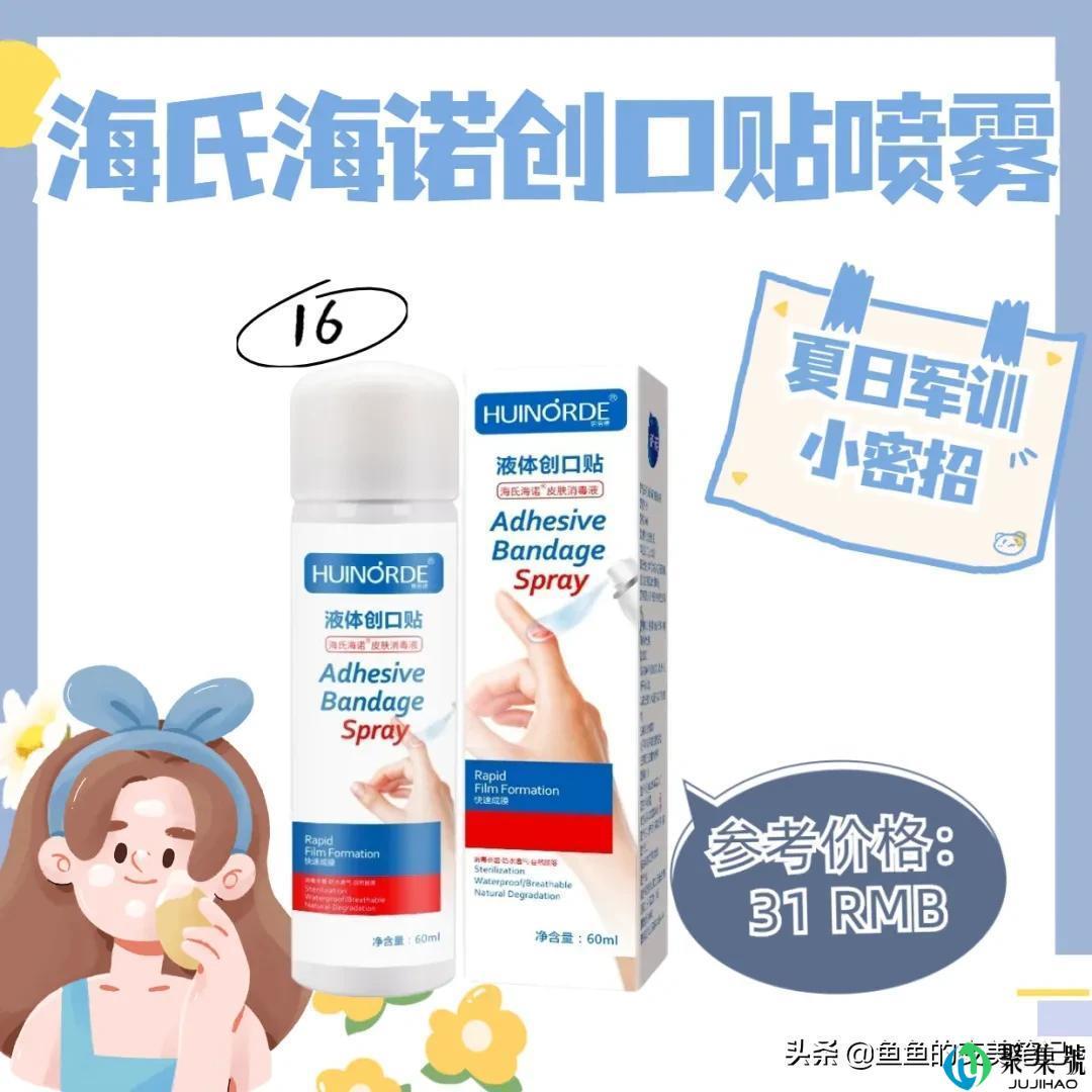 液体创口贴比普通的更方便,它快速成膜,能抑菌消炎。喷的部位也不会因为脚步包扎而发白,也不怕沾水进水,即使不是军训,日常也可以备着。