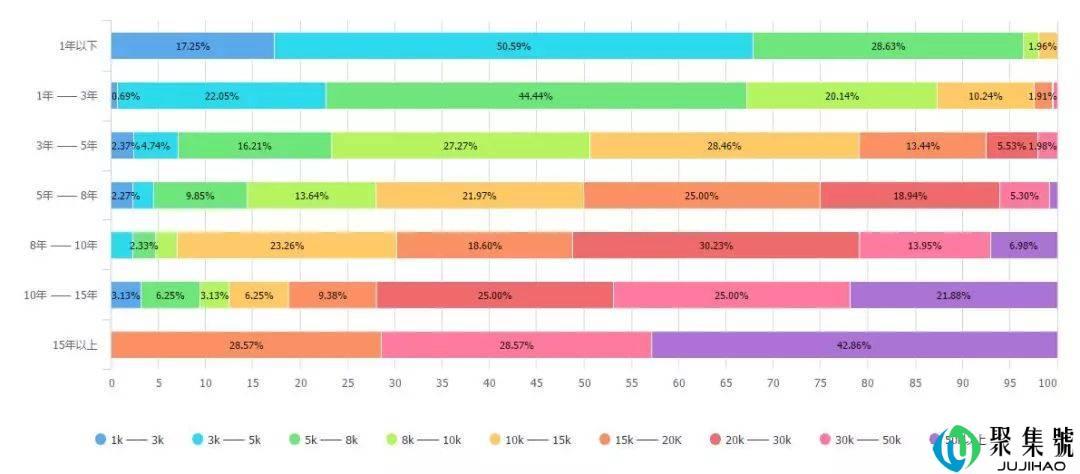 例如1年以下的大部分新人,薪资基本处于3k至5k;而15年以上的资深广告人,待遇基本月薪20K起步。相关经验越久,待遇水涨船高。