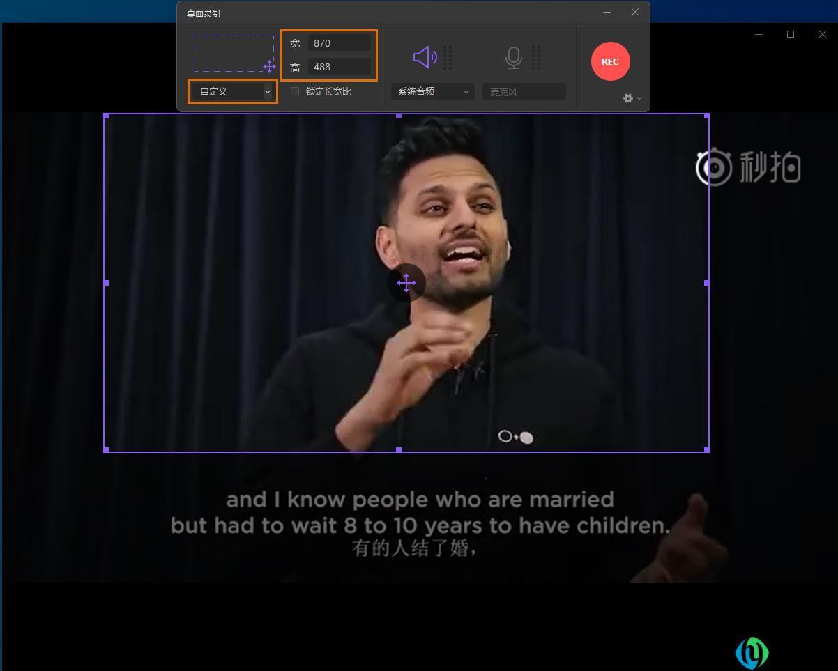 您可以通过拖动并根据需要设置该框来选择您想要录制的区域。你也可以手动输入高度和宽度。