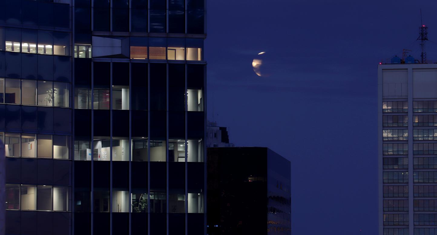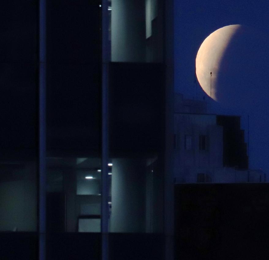 当地时间11月19日,阿根廷首都布宜诺斯艾利斯市的中央商务区出现月食景观。