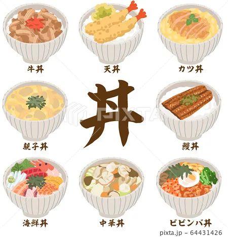 ④ 作为「丼物」简称的「丼」是如今常见的用法。「丼物」是指将米饭和菜放入同一个「丼鉢」中的日式料理形式,中文可理解为“日式盖饭”。