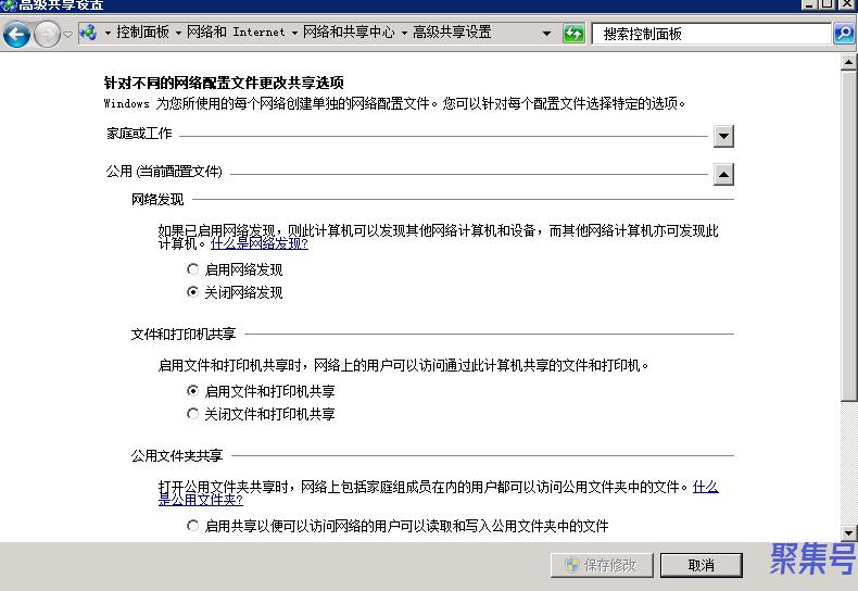 再单击更改高级共享设置,在打开窗口中启用文件和打印共享,并关闭密码保护共享。如下图所示。