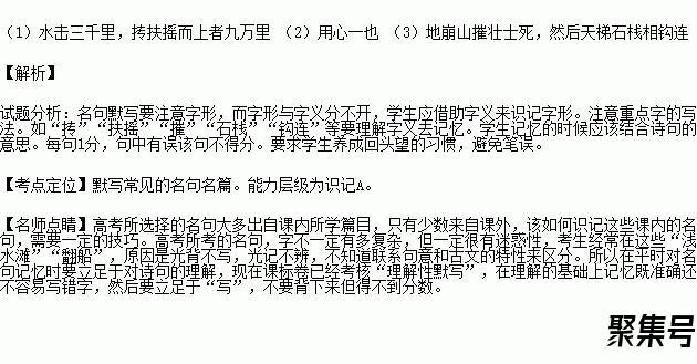 1、大鹏一日同风起,扶摇直上九万里。——《天台晓望》 李白