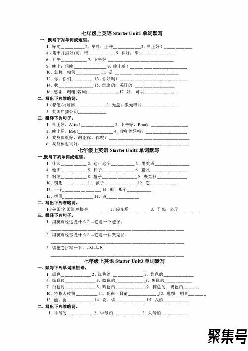 的路上go through 通过Excuse me. 对不起。go down… the garden districthave a good tripthe beginning of…let sb. do sth.on the right/leftWhere is the post office?Is there a big supermarket near where you are?Bridge Street is a good place to have fun.. Unit 3 Why do you like koalas?very shyvery cutekind ofvery smartSouth Africaother animalsplay withduring the dayat nightevery daybe quietWhy do you like koalas?Let's see the pandas first.Where are lions from?They're kind of interesting.What other animals do you like?Why do you want to see the lions? Unit 4 I want to be an actor.shop assistantpolice officebank clerkTV stationgo outget sth. from sb.like doing sth / to do sthgive sb sthwant to bebe interested inan interesting jobwant adstalk with/to sbpop starsan international schoolschool playa library assistanta sports coacha movie actorWhat do you do?What do you want to be?Where does your sister work?Does he work late? Unit 5 I'm watching TV Watch TVdo homeworkeat dinnerTV showwrite a letterread a bookwait fortalk aboutat schoolat homeat the poolplay soccerplay basketballtalk on the phonethanks for…I am not talking.What are you doing?Are you playing soccer? Unit 6 It's raining!sound terriblehave a good timearound The World showon vacationtake photoslook coolthis group of…in your hometownplay computer gamespretty gooddifferent kinds ofnot badsome…others…Thank you for helping me!How's the weather?How is it going?What do you do when it's raining? Unit 7 What does he look like?look likeshort hairlong haircurly hairstraight hairmedium heightmedium buildgood-lookinga little bittell jokesstop talkinggo shoppingwear glassesthe captain of…the basketball teampop singerWhat does he look like?Don't show the other students. Unit 8 I'd like some noodles.beef and tomato noodleswould likewhat kind of noodleswhat size bowl of noodlesa large bowl of noodlesice creamCan I help you?chicken and cabbage noodlesmutton and potato noodlestomato and egg noodlesbeef and carrot noodlesorange juicegreen teaHouse of DumplingsDessert HouseRMBphone numberWhat kind of noodles would you like? Unit 9 How was your weekend?do one's homeworkplay soccerclean the roomgo to the beachplay tennisgio to the movieslast weekendon Saturday morningvisit sbstudy for…what aboutstay at homehave a partydo some readingplay the guitarspend the weekend last weekgo for a walkgo shoppingplay sportstalk showlast monthplay with…look forit's time to do sth.go to the mountainsHow was your weekend?It's time to go home. Unit 10 Where did you go on vacation?go on vacationgo to summer campstay at homestudy for examsCentral Parkshow sth to sbhelp him find his fatherwalk back to…go shoppingthe Palace Museumthink ofhave fun doing sthbus tripthe Great WallTian'an Men Squarea Beijing Hutongmake sb do sthdecide to do sthWhat do you think of the vocation?I find a boy crying. Uint 11 What do you think of game shows?Soap Opeeeragame showsports showtalk showhealthy livingkey ringcan't standdon't mindthanks for doing sthagree with sbshow sb sthshow sth to sbenjoy doingHow about…?=What about…?baseball capsports newsCulture ChinaChinese cookingAnimal Worldwelcome to…What do you think of TV?=How do you like TV?I don't mind them. Unit 12 Don't eat in classarrive late for classin the hallwayslisten to musicschool rulestell sb about sthin the dining hallsports shoeswear a uniformhave togo outpractice your guitartoo manygym classmake dinnerthe Children's Palacein bedwear a helmetride a bikeDon't run in the hallways!Do we have to clean the classroom?What else do you have to do。