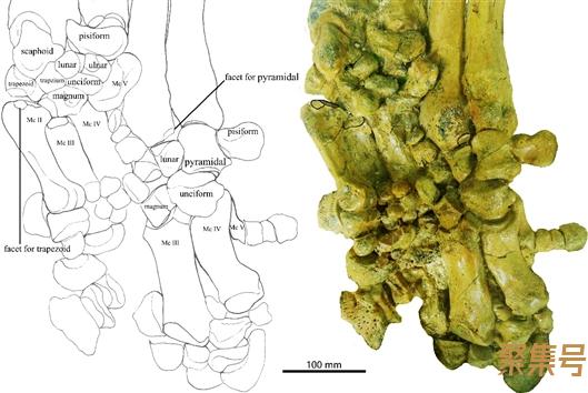 并角犀属脚骨化石。(中科院古脊椎动物与古人类研究所供图)