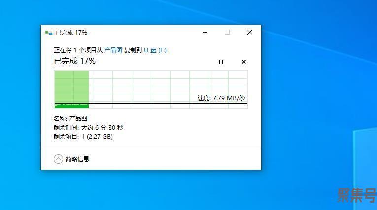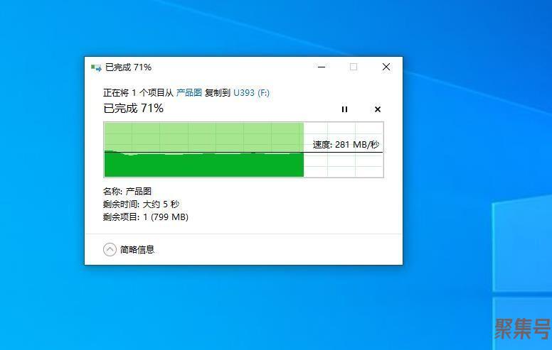 对比下来,发现同样的文件、同样的网络、同样的传输路径,普通U盘拷贝速度仅7.79MB/s,aigo固态U盘U393拷贝速度快到281MB/s,前者需要六七分钟才拷贝完,后者十几秒就完成了。不愧为“固态U盘”,aigo固态U盘U393真真是名副其实的高速移动存储设备了。