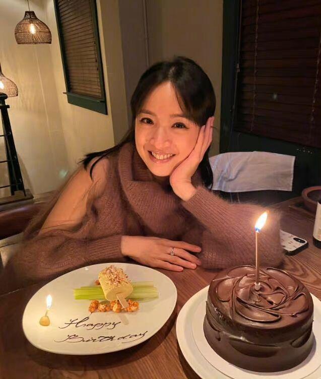另一张照片中,林依晨素颜出镜,穿着一件浅棕色的露肩毛衣,将头发挽在了脑后,手撑在桌上捧着脸,笑得十分开心。桌上还摆着一个巧克力蛋糕,蛋糕上还插着蜡烛,看来她还没许愿呢,不过现在孩子也有了,心愿也算是达成了。