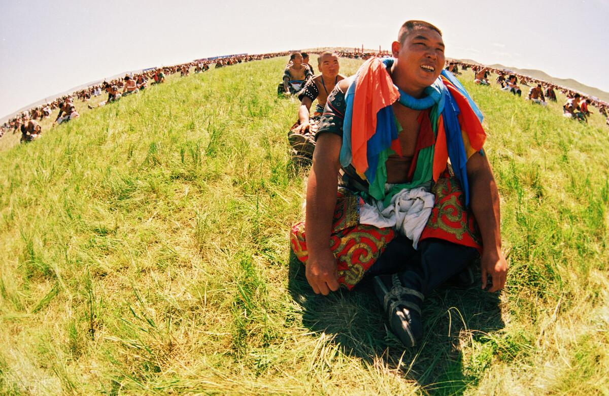 那达慕大会上正式摔跤的仪式很隆重,参加者要穿上传统的服装,坎肩用多层帆布或皮革制成,缀着闪亮的银钉或钢钉;下着三色短裙、绣花马裤和长靴,跳着摔跤舞,口唱摔跤歌,初出场便争取先声夺人。按照规则,膝盖以上的任何部位碰着地面就算失败。摔跤手每获得 一次胜利, 就在胸前挂上-一条彩色布条。全旗(相当于县)最优秀的大力士、摔跤手,被人称为“纳钦”(意思是勇敢敏捷的雄鹰);冠军称作“巨人”。摔跤名手在群众中享有极高的声誉。