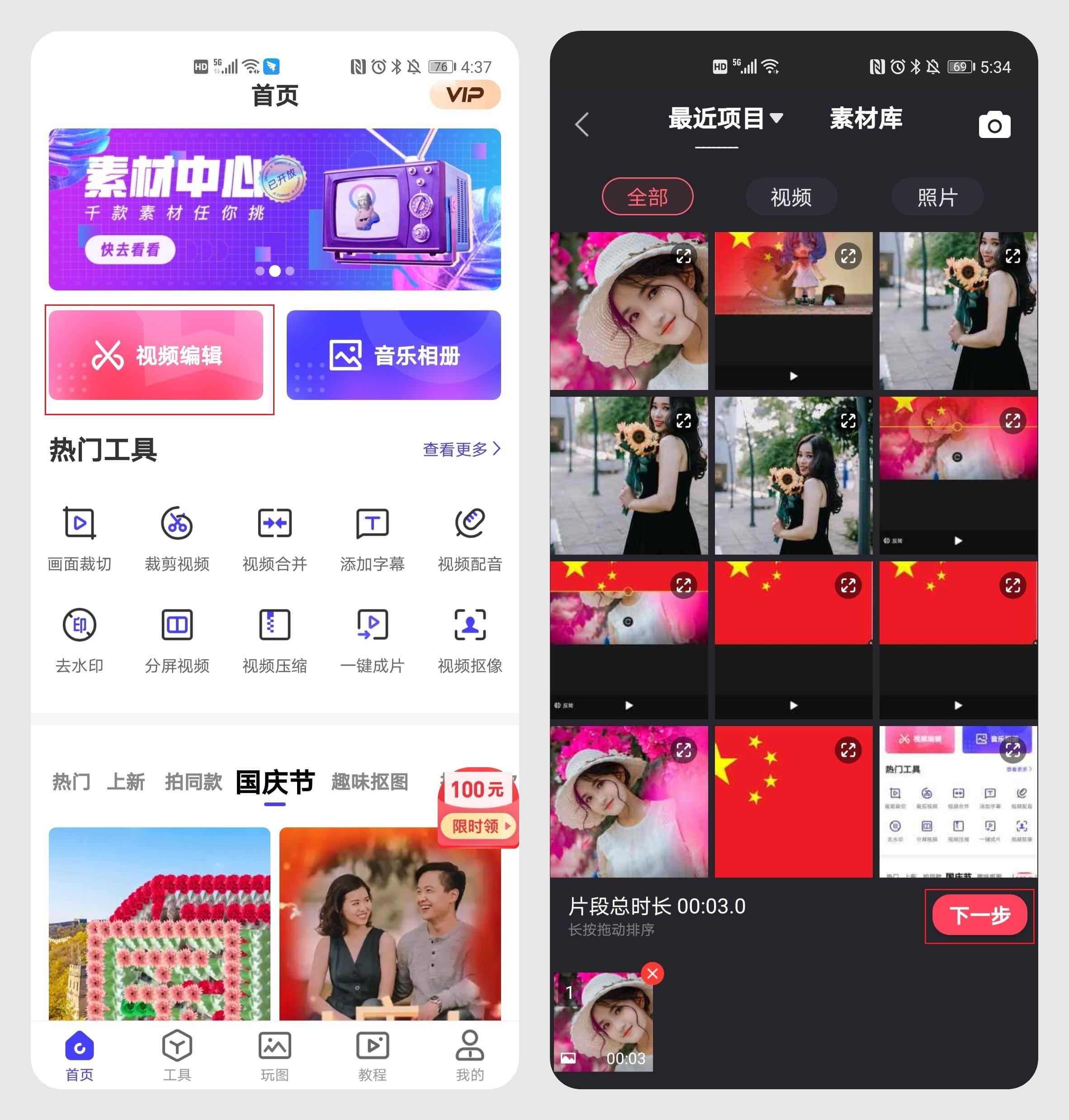 1、打开手机中的清爽视频编辑,点击「视频编辑」功能,就可以进入相册选择原头像素材。