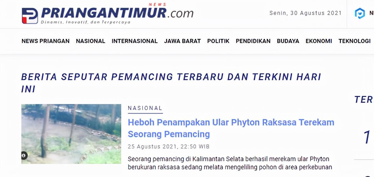 2021年8月25日《PrianGantimurNews》报道,印尼南加里曼丹省的塔纳劳特县(Tanahlaut)金塔普区(Kintap)一名垂钓者发现了一条巨蟒,据参照物以及当时的形态复原测量,这条巨蟒的尺寸达到了8米左右,而根据其拍摄的视频花纹特征,是一条网纹蟒!