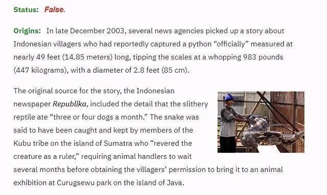 而那些巨蟒的记录也逐渐被有心人发现有造假,比如桂花巨蟒后来有卫报的记者求证,是在蜕皮时连蛇皮一起测量,但问题那个重量怎么也会测量错误,因为桂花巨蟒似乎只有100千克左右,长度在6.5~7米之间。