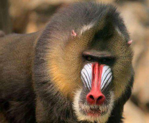 在沟中间,外面的皮肤为绿色,脊间是鲜红色,然后有很多条的沟壑,其间的这种色彩鲜艳;屁股也呈鲜艳的紫红色,以用于吸引雌性交配。非常有特色,非常像鬼怪,因而人们也称之为山魈。