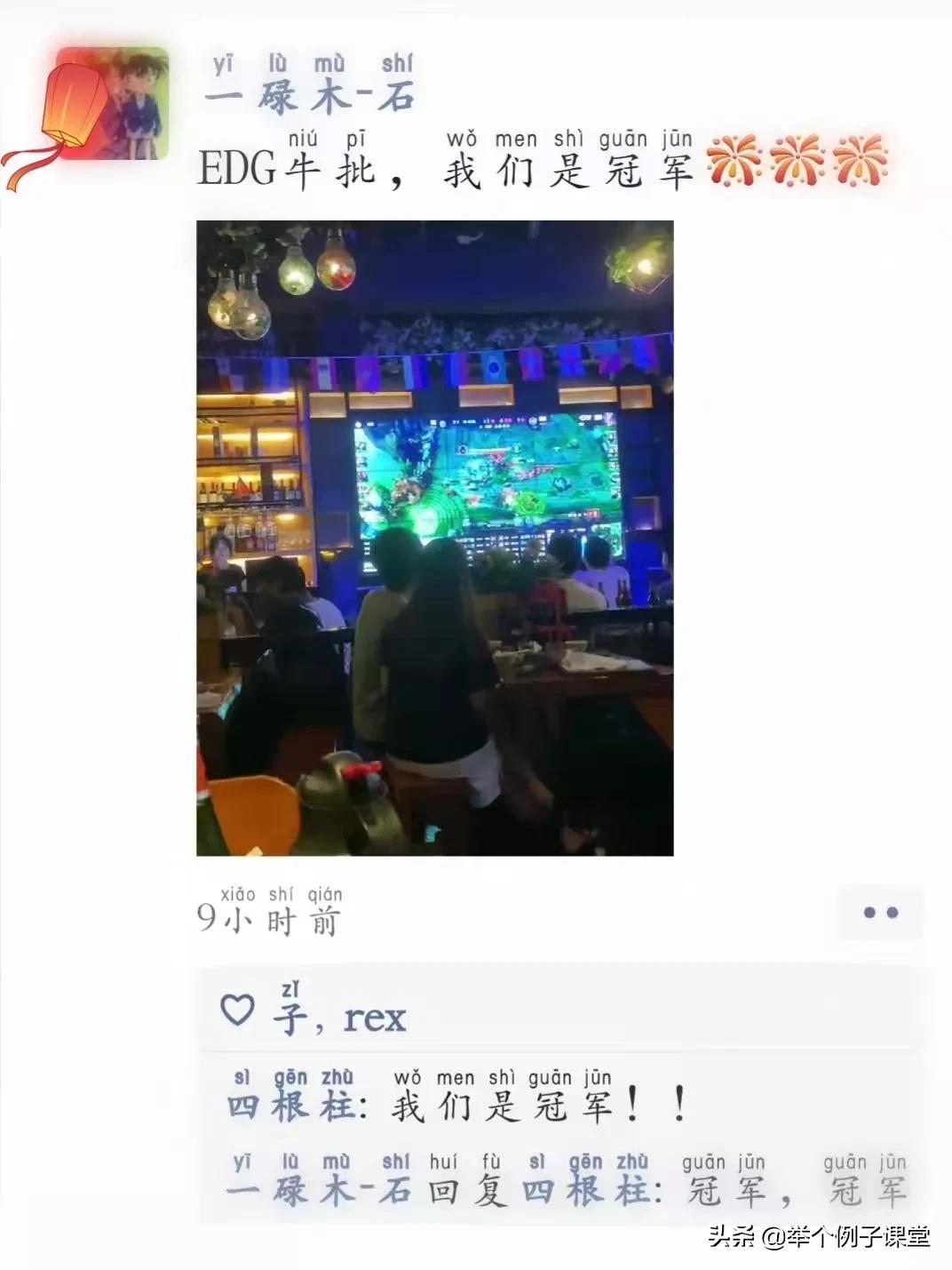 最近相信大家的朋友圈一定被EDG刷屏了吧,从朋友圈的动态图片、视频看到酒吧、娱乐、校园里广场上竟都坐满人,他们竟然为了观看别人打英雄联盟网络游戏,这有点让大家觉得太不可思议了吧。