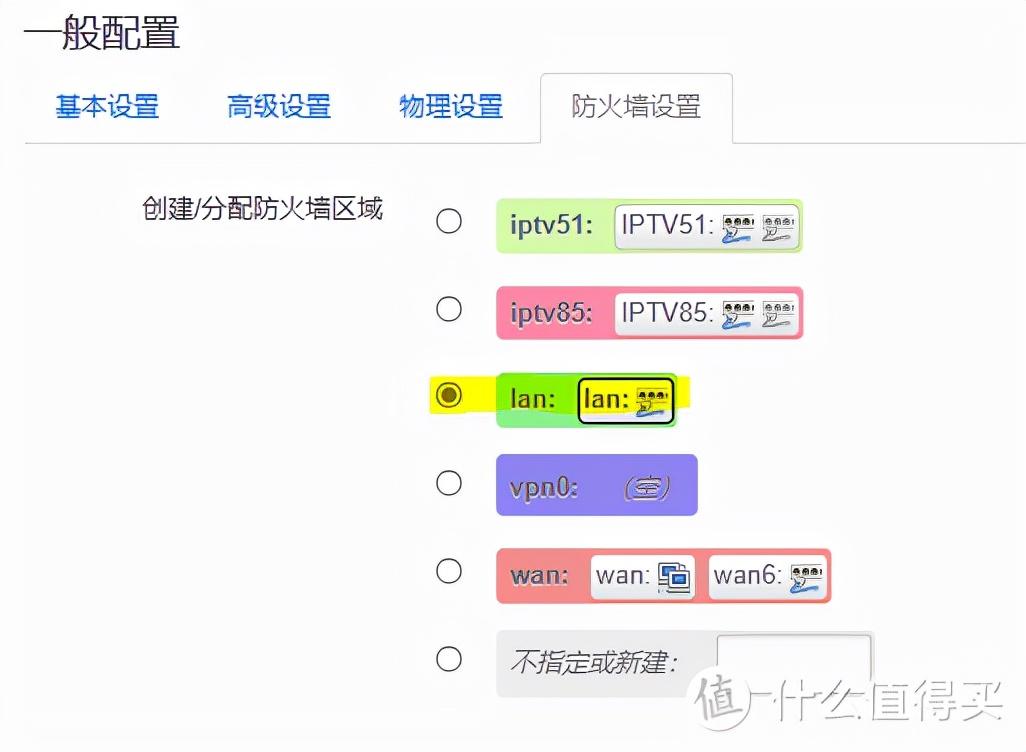 包括以下接口中选择自定义接口,输入名称lan,然后提交。