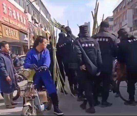 海报新闻此前报道,这则在网上引发广泛关注的视频显示,多名身着“静通市容”制服的男子围着一辆自行车,不断将自行车后架上装着的甘蔗搬到旁边印有“静通市容”字样的皮卡车后斗上,推着自行车的老人看着制服人员搬走甘蔗后当街号啕大哭。有网友评论认为,老人大冷天卖甘蔗不应被如此粗暴对待。