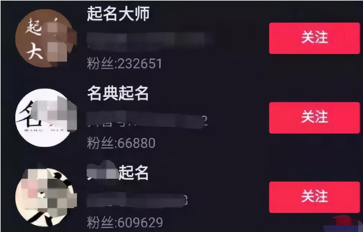 据数据显示,在中国每年有1700万的新生婴儿诞生,那么宝宝生下来第一件事是干嘛?取名字,人如其名,哪个做父母的不想给孩子起一个好听又有内涵的名字,有的请家里的长辈,也有的请一些所谓的名人、大师,收费少则几百,多则千元。有需求的地方就有钱赚,项目也自然就出来了。也许有人会好奇,那我又不懂如何起名,怎么做呢。在这里说个比较简单,直接的办法——起名软件,网上有很多这类免费的软件,通过生辰八字、五行来生成一个适合又好听的名字,下面的解释都很详细,直接照搬过来就是。打开抖音、快手搜索起名,可以看到很多这类的账号,粉丝量都不低,底下评论让大师起名的人也很多。