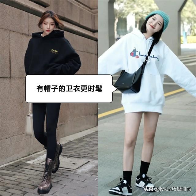 如果你照搬博主的搭配思路,也用宽松卫衣,上宽下紧穿衣,你会发现,没有博主的高颜值和好身材,你很难穿出好效果。