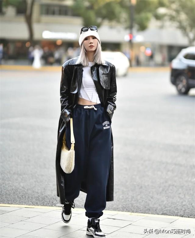 上面小姐姐这种抢眼的灰金色短发,处处都透露出率性和不羁。配帽子时,选择黑白灰基础色的帽子,反而更能打造个性标签。