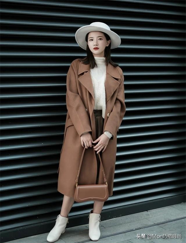 当然,更多女生在冬季搭配中更主要的需求是想要显瘦和显高。这个时候可以多选纯色帽子,与整体内搭构成l型顺色。