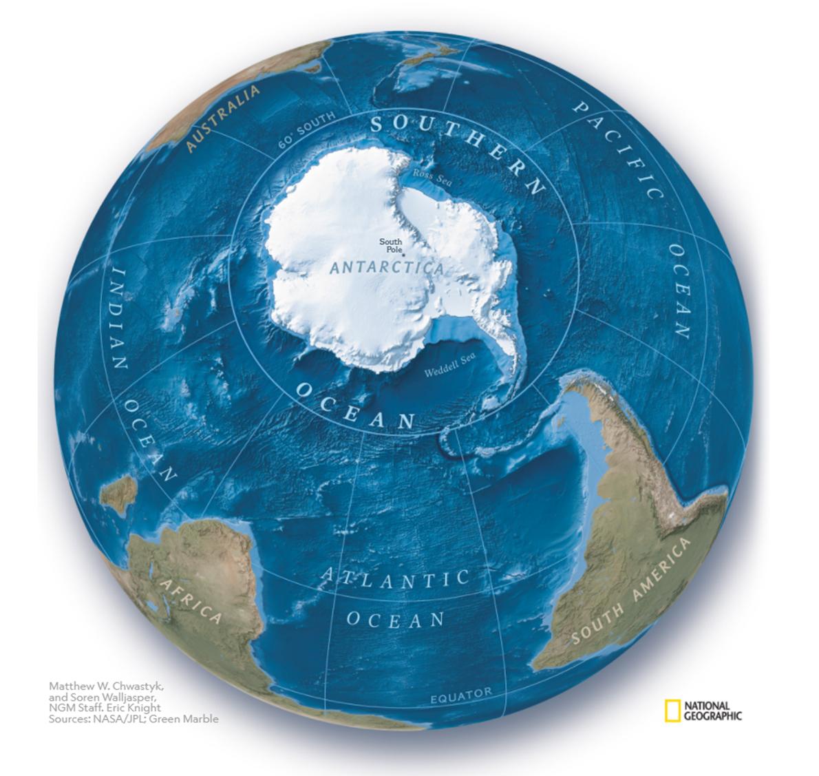 “虽然我们只有一个互相连通的海洋,但国家地理正式承认南极洲周围的水体为南大洋,实在太好了,”Earle在邮件声明中写道:“周围是流速极快的南极绕极流,南大洋是唯一一个与其他三大洋接触、完全围绕南极大陆的海洋,而非被它们所包围。”