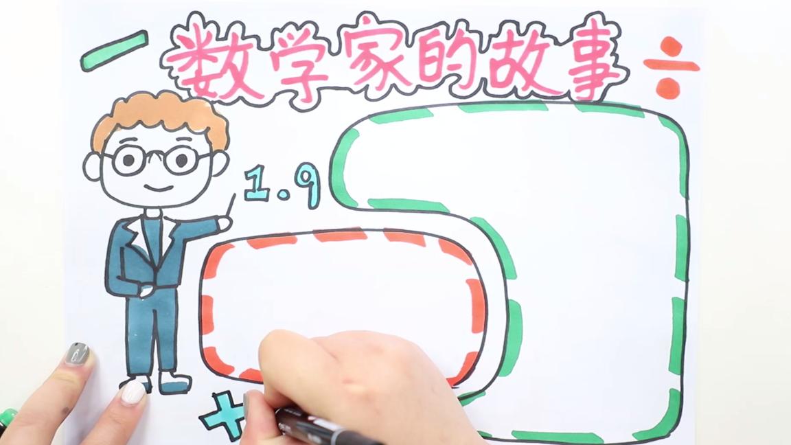 ①画上数学家的卡通形象,画上文本框,写上主题数学家的故事;