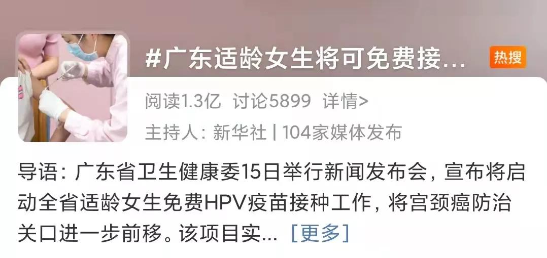 广东省将为全省适龄女性免费接种HPV疫苗!