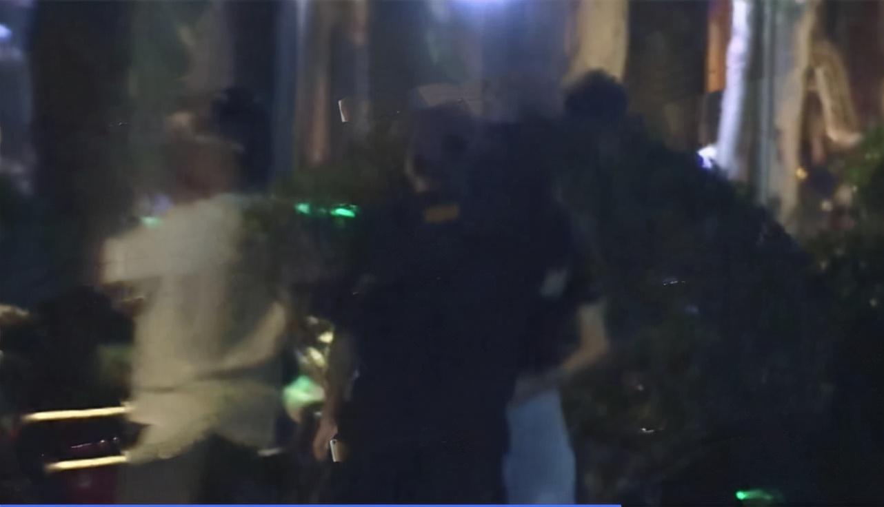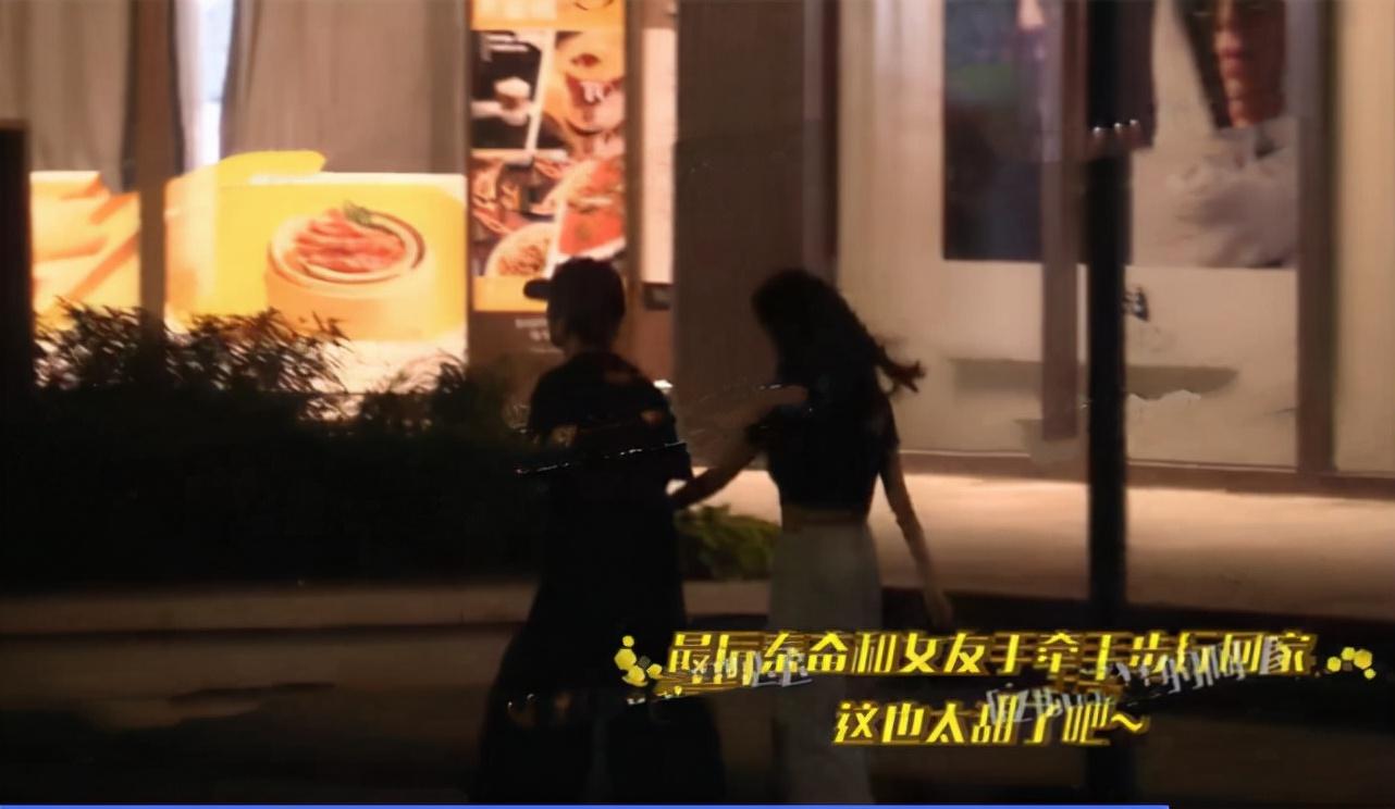 二人先后从一家餐馆走出来,随后一起牵手走向车子,秦奋从车里拿完东西后,就牵着女子的手一起横穿了马路,期间还边走边交流。