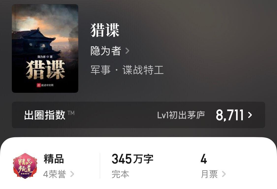 说起谍战类的小说,就必须提到大神寻青腾的谍影风云,这本书在连载时真是相当的火爆。
