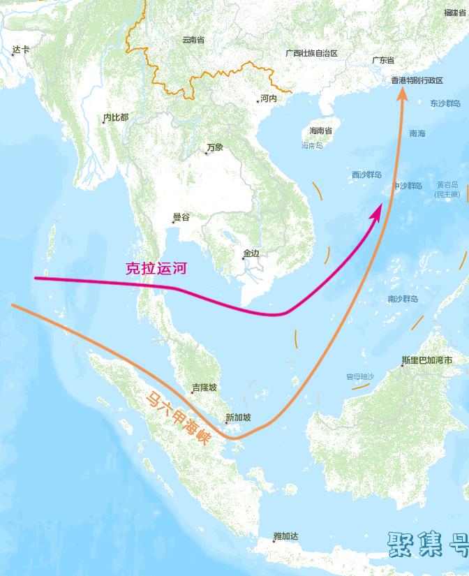 而且从地图上来看,若要去中、日、韩三国,从这条克拉运河走明显要比绕行马六甲海峡要近许多。