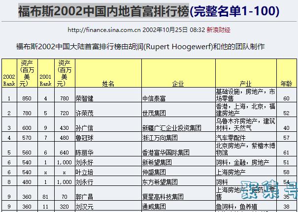 福布斯2002中国内地首富排行榜榜首:荣智健