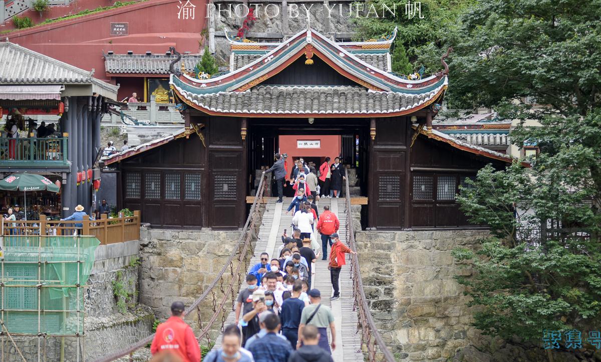 泸定桥位于泸定城西的大渡河上,桥身长101米,宽2米多,用13根很粗的铁索连接东西两岸,其中九根为底索,每根相距30米厘米,上铺木板,以通行人,两边各有两根铁索作为护栏,走在上面,晃动厉害,若往下看,下面是奔腾的大渡河,令人毛骨悚然,胆小者难以通过。
