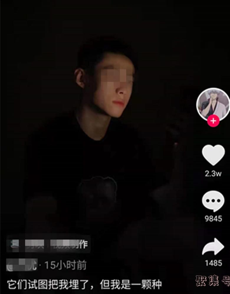 在这个账号里,有一条甜水面小哥最新发布的置顶视频,整个画面是黑色的,看着很压抑,下面还有一段文字:他们试图把我埋了,但我是一颗种子。下面有两万多条点赞。