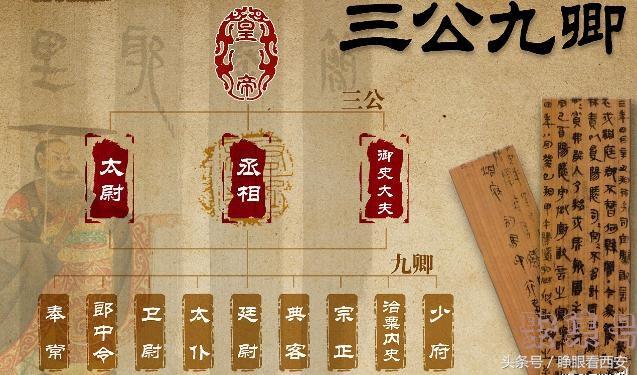 九卿:三公之下设有九卿,分别是奉常、卫尉、郎中令、太仆、典客、廷尉、治粟内史、宗正、少府