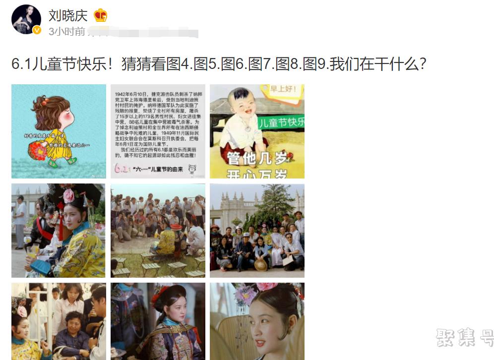 6月1日,65岁的刘晓庆在社交平台晒出九宫格照片,来庆祝六一儿童节,其中包含六张年轻时的旧照,并配文让网友猜测当时的情景。