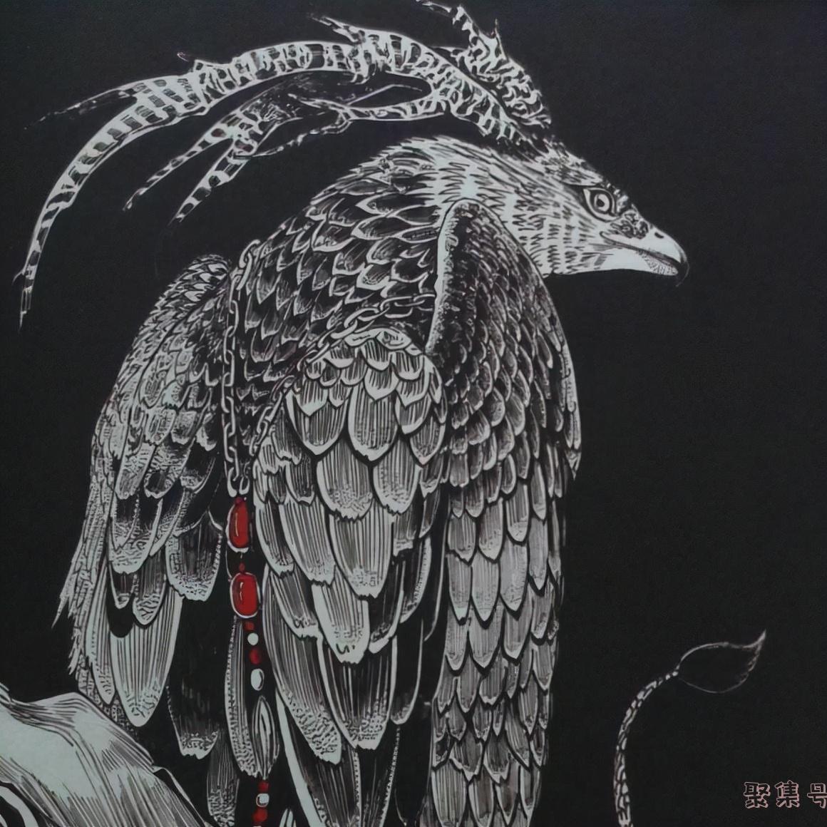 【译文】再往东五百里,是座鹿吴山,山上没有花草树木,但有丰富的金属矿物和玉石。泽更水从这座山发源,然后向南流入滂水。水中有一种野兽,名称是蛊雕,形状像普通的雕鹰却头上长角,发出的声音如同婴儿啼哭,是能吃人的。