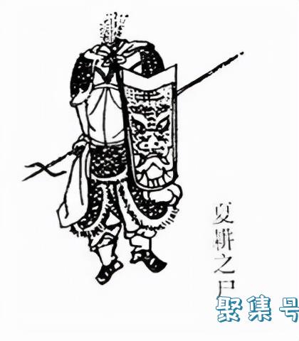 《山海经·大荒西经》有人无首,操戈盾立,名曰夏耕之尸。故成汤伐夏桀于章山,克之,斩耕厥前。耕既立,无首,走厥咎,乃降于巫山。