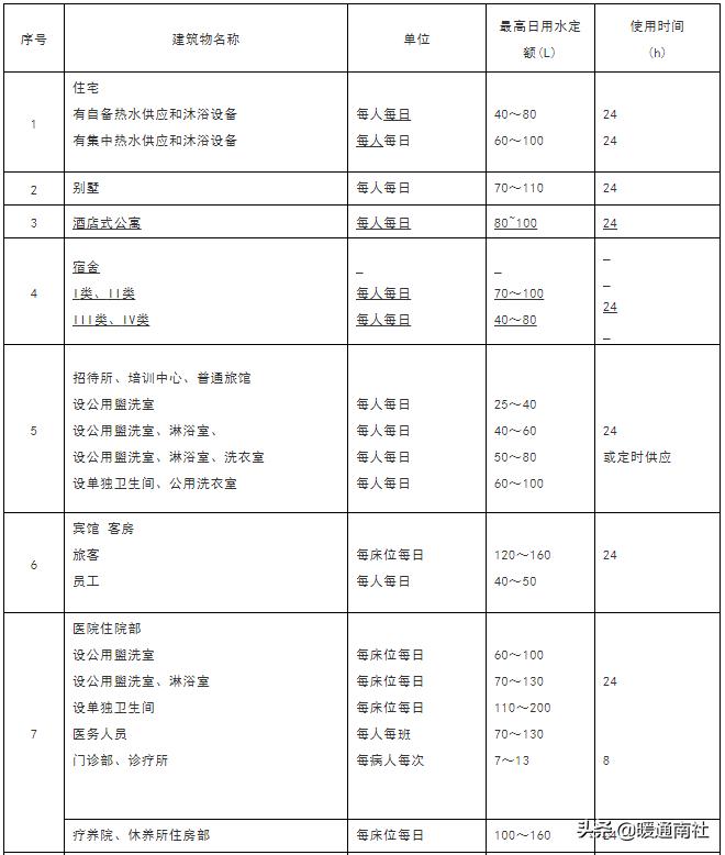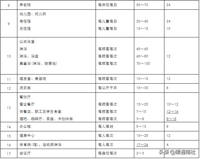 全日供应热水的宿舍(I、II类)、住宅、别墅、酒店式公寓、招待所、培训中心、旅馆、宾馆的客房(不含员工)、医院住院部、养老院、幼儿园、托儿所(有住宿)、办公楼等建筑的集中热水供应系统的设计小时耗热量应按下式计算:
