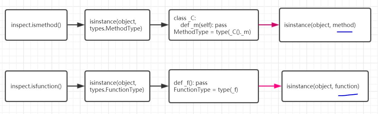 在标准库inspect 中,它提供了两个自省的函数,即 ismethod() 和 isfunction(),可以用来判断什么是方法,什么是函数。
