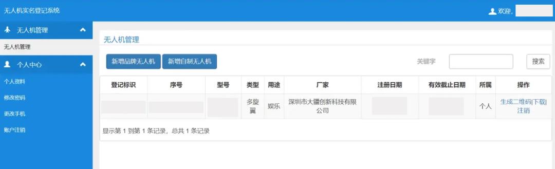 (3)如果无人机发生变更、丢失、损毁等情况,可点击“注销”用来注销该无人机的信息。