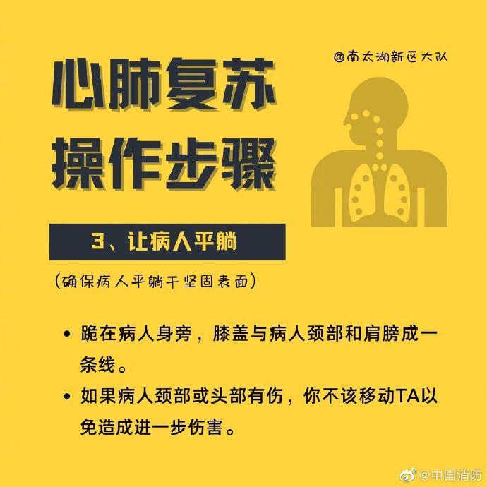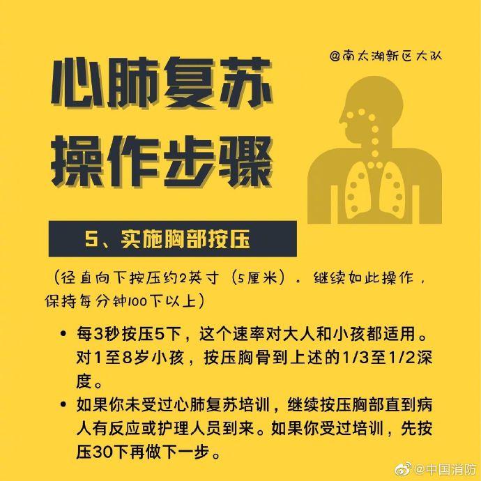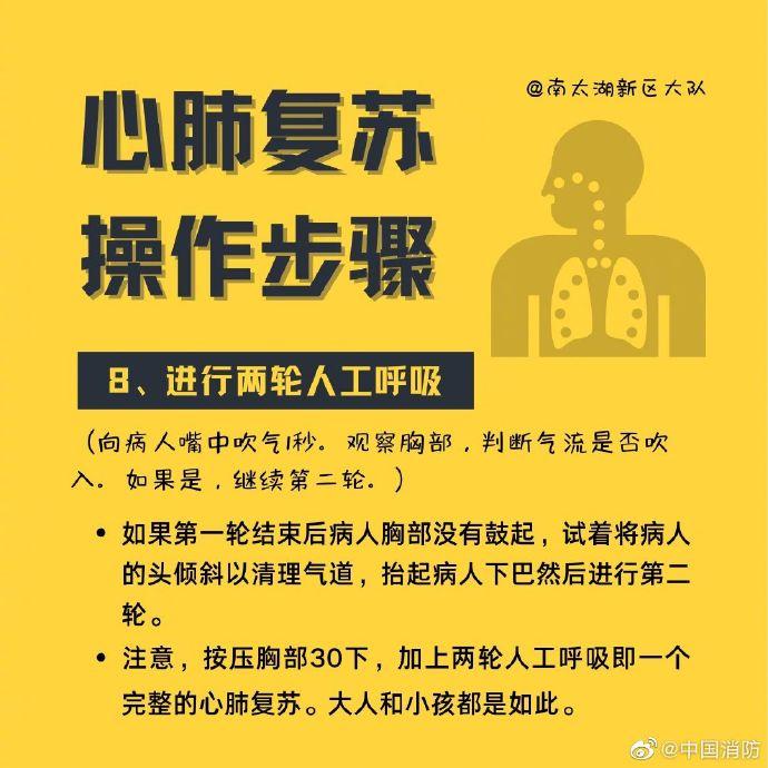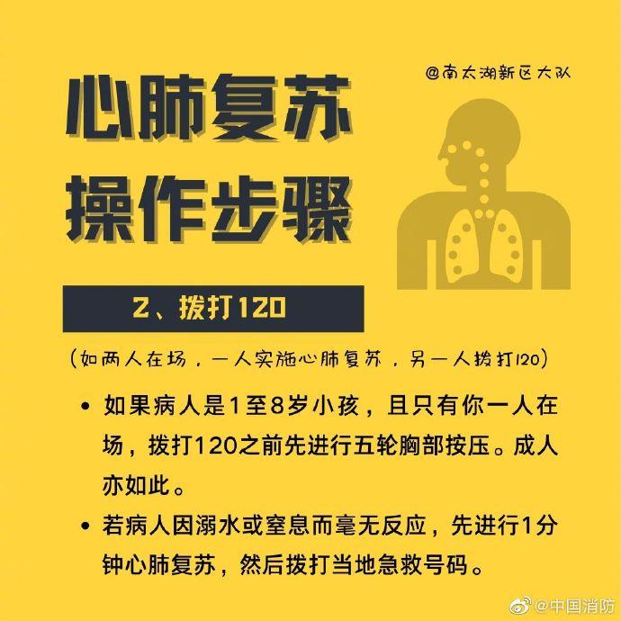 正文 心肺复苏操作步骤有哪些(心肺复苏操作步骤及注意事项) kpjjhadmin V管理员 /2021-12-22 17:49:01 /212 阅读 1222 心肺复苏将被纳入教育内容【心肺复苏操作步骤】4分钟,虽然很短暂,但当一个人心跳呼吸骤停的时候,4分钟却是抢救的黄金救援时间。我们学会心肺复苏术,就能抢得最佳黄金救援时间。消防云课堂@湖州南太湖新区消防声明:转载此文是出于传递更多信息之目的。若有来源标注错误或侵犯了您的合法权益,请作者持权属证明与本网联系,我们将及时更正、删除,谢谢。 声明:本文内容及图片来源于读者投稿,本网站无法甄别是否为投稿用户创作以及文章的准确性,本站尊重并保护知识产权,根据《信息网络传播权保护条例》,如果我们转载的作品侵犯了您的权利,请在一个月内通知我们,我们会及时删除。请将本侵权页面网址发送邮件到laoyang1981@qq.com,我们会及时做删除处理。