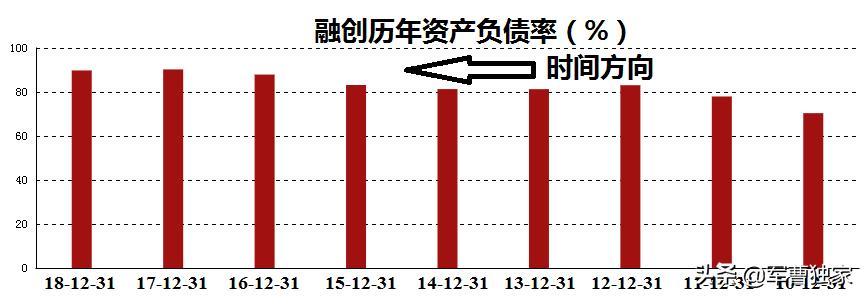 融创的资产负债率,从2010年的70.38%,增长到2018年底的89.80%。